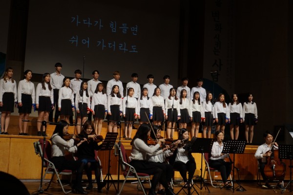 The Intercessory Prayer Week for North Korea was planned to introduce the reality of life in North Korea, and churches in North Korea to local society. Participants included students, HGU staff, and the faculty of Handong Global University. Various activities were prepared under the theme of unification. These activities included: service, special lectures on unified Korea and the history of unification, the North & South Korea Talk Show, a Concert, and sketches.