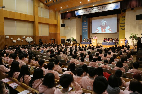 On February 20, at Hoyam Chapel, an HGU Entrance Ceremony for the 2017 students was held. About 2500 people, including freshmen, professors, and parents participated.