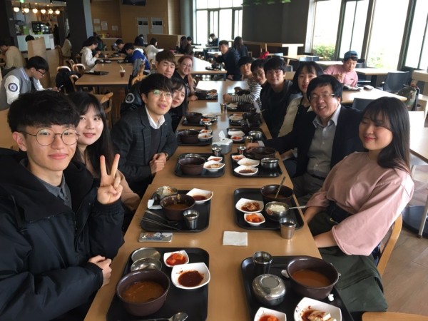 On the morning of 18th, HGU’s student cafeteria was packed with students dining with President Chang Soon-Heung. Despite it being midterm exam period, more students came than usual, likely because the breakfast came without a price tag.