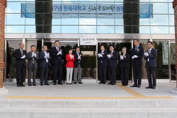Approximately 30 participants are associated with the project some from the Gyeongbuk province include, Handong Global University President Soon-Heung Chang, Pohang City Mayor Lee Kang-Deok, National Assemblymen Jung Jae Kim and Myung Jae Park, President of Pohang City Assembly Myung Ho Moon, Chairman of Pohang Chamber of Commerce & Industry Kwang Soo Yoon, Institute for Information and Communication Technology Promotion Human Resources Division Director Ryung Choi, have participated in the ceremony. Additionally, there was time for discussion and introduction of the main operating plans for the project.