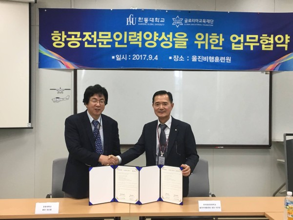 On September 4th (local time), Handong Global University (President Chang Soon-Heung) and the Uljin Flight Training Center in Gloria Educational Foundation (Chief Director Shin Dae-hyeon) of Korea Aviation College made a business agreement in order to train excellent aircraft experts.