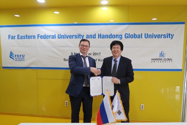 President Chang said, "On top of raising global leaders with globalization education, HGU is also focused on cultivating professional individuals prepared for the fourth Industrial Revolution by providing entrepreneurship and start-up business education, converged and integrated education, etc." He continued, "I am glad to begin mutual exchanges with FEFU of Russia for various collaborations including Korean Studies."