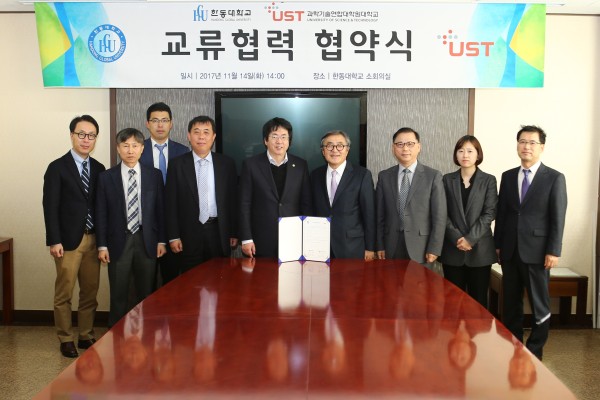 On November 14, 2017, Handong Global University (HGU) (President Chang, Soon Heung) and University of Science and Technology (UST) (President Moon, Kil-Choo) signed a business agreement of academic exchange and cooperation. The signing ceremony was held at Handong Global University with 10 attendees from the two institutions including President Chang and President Moon.