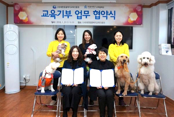 Under the agreement held at Korea Institute for Animal Welfare Education in Gyeongju, two institutes agreed to cooperate with: ▲ Creating and spreading educational donation infrastructure ▲Providing educational donation programs ▲Supporting the development and management of educational donation programs ▲Matching and promoting educational donations.