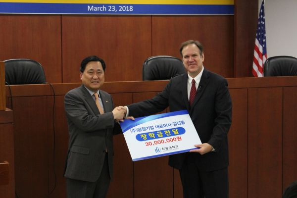 Keumwon Inc. (POSCO’s outsourcing partner firm, CEO Jin-Hong Kim) delivered a scholarship of $30,000 to HGU’s (President Soon-Heung Chang) HILS (Handong International Law School) foreign students. Keumwon Inc. has donated scholarships to HILS for 4 consecutive years, with this year’s scholarship going to 7 foreign students attending the school.
