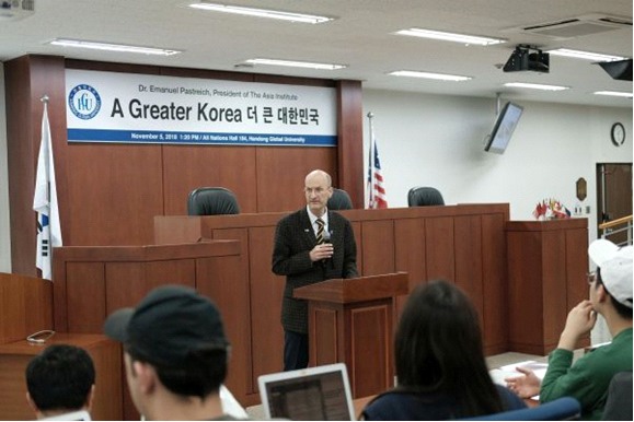 Handong Global University (President Chang Soon-Heung) invited chairman of the Aisa Institute Lee Man-Yeol(Emanuel Pastreich) to give a special lecture in All Nations Hall room 104 on November 5th.
