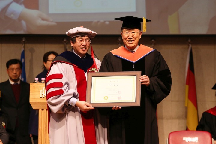 Ban Gi-Mun, 8th Secretary-General of UN, has received the Honorary Educational Technology Doctorate Degree in Handong Global University’s (President Chang Soon-Heung) 21st graduation ceremony that took place in 15th of February. Handong Global University has awarded the honorary doctorate degree to the 8th Secretary-General of UN, Ban Gi-Mun, for his dedication in fighting world poverty and protecting peace, and for his contributions in the enhancement of the culture of mankind and academics.