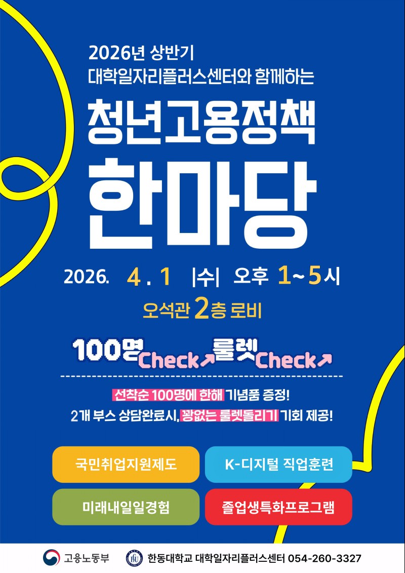 [대학일자리+센터]청년고용정책 한마당 개최-선착순 기념품 증정!