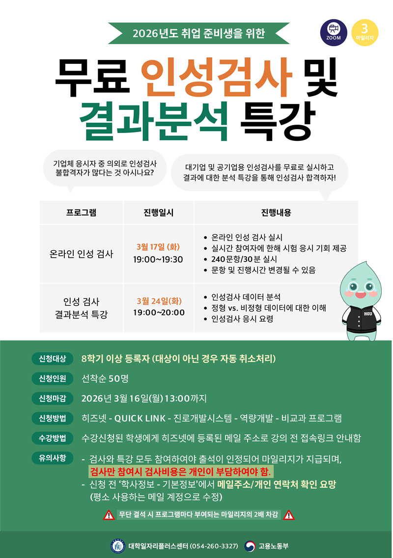 * 문의 : 054-260-1893(대학일자리플러스센터 홍수민)