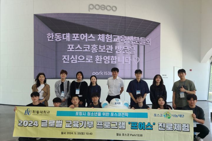 한동대학교와 포스코1%나눔재단은 ‘2024 글로벌 교육기부 프로그램 포어스’ 사업의 일환으로 지난 25일 포스코견학 진로체험 프로그램을 실시하였다.
