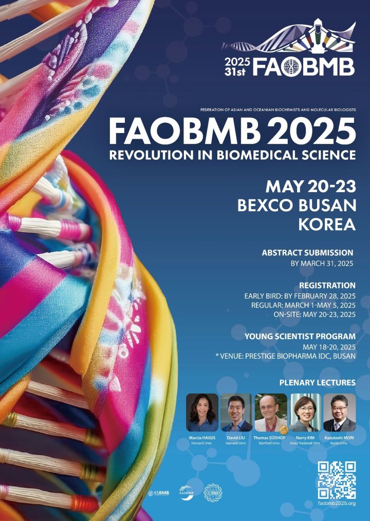FAOBMB 2025는 30여 개국에서 약 4,000여 명의 생명과학, 의학, 바이오산업 분야 연구자들이 참석해 최신 연구 성과와 미래 기술을 공유할 예정으로, 그 규모와 수준에서 국내 최대급 생명과학 행사로 주목받고 있다.