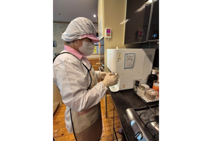 [사진1] IoT 염도지킴이로 국물 염도를 측정하는 어린이급식소 조리종사자