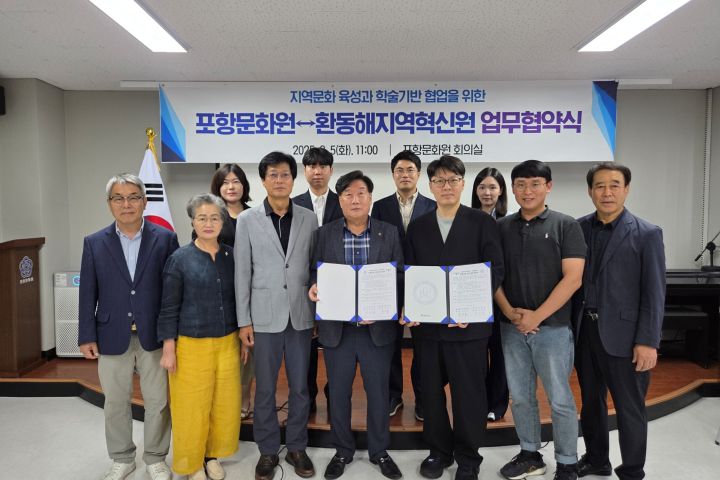 한동대학교(총장 최도성) 환동해지역혁신원과 포항문화원이 지역문화 기반의 혁신 생태계 구축을 위한 포괄적 업무협약을 체결했다고 5일 발표했다.