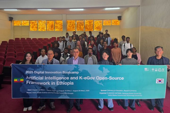한동대학교(총장 최도성)가 UNESCO 유니트윈 사업의 일환으로 지난 8월 13일부터 20일까지 8일간 아디스 아바바 과학기술대학교(Addis Ababa Science and Technology University, AASTU)와 협력하여 '디지털 이노베이션 부트캠프(Digital Innovation Bootcamp in Summer 2025)'를 성공적으로 개최했다고 20일 발표했다.
