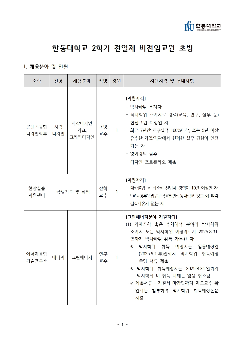 [교무팀] 2025학년도 2학기 전임교원 초빙