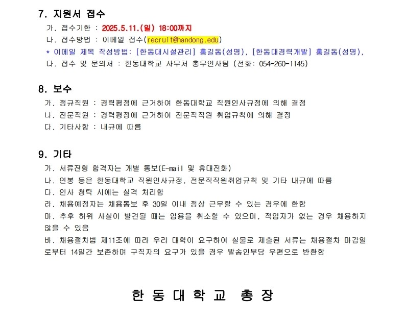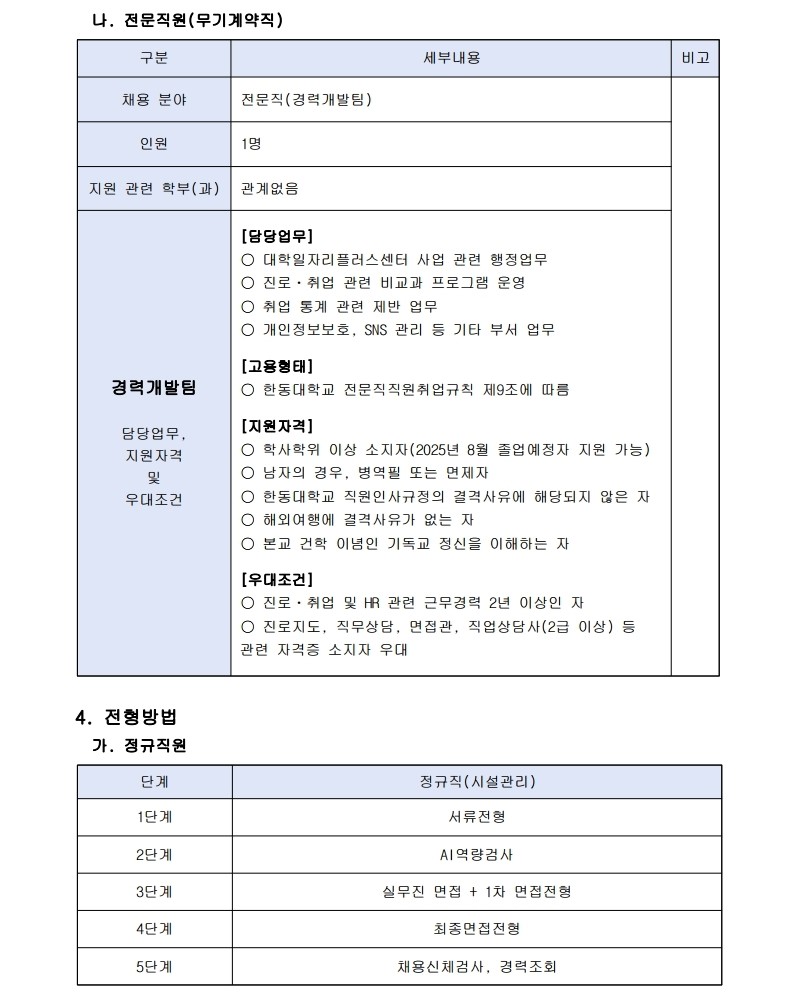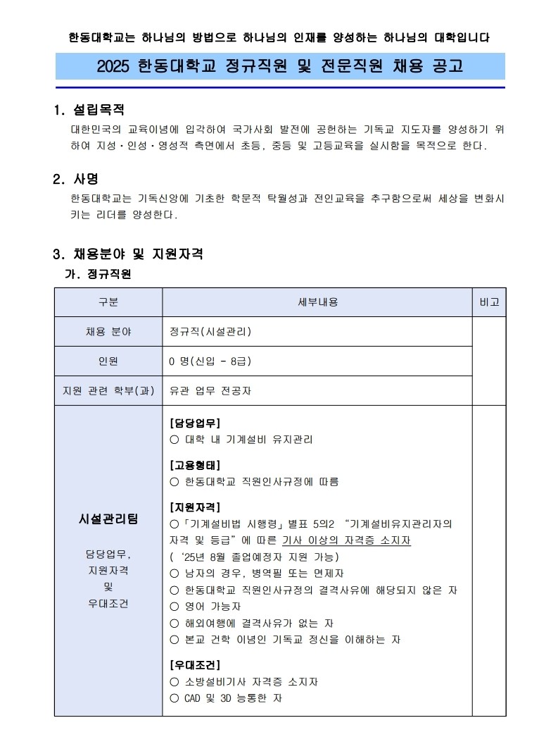 [한동대학교] 2025 한동대학교 정규직원 및 전문직원 채용공고