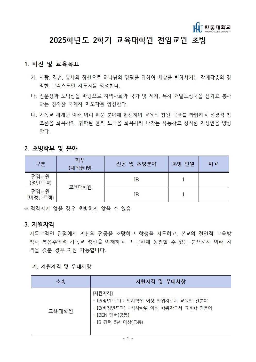 [교무팀] 2025학년도 2학기 교육대학원 전임교원 초빙