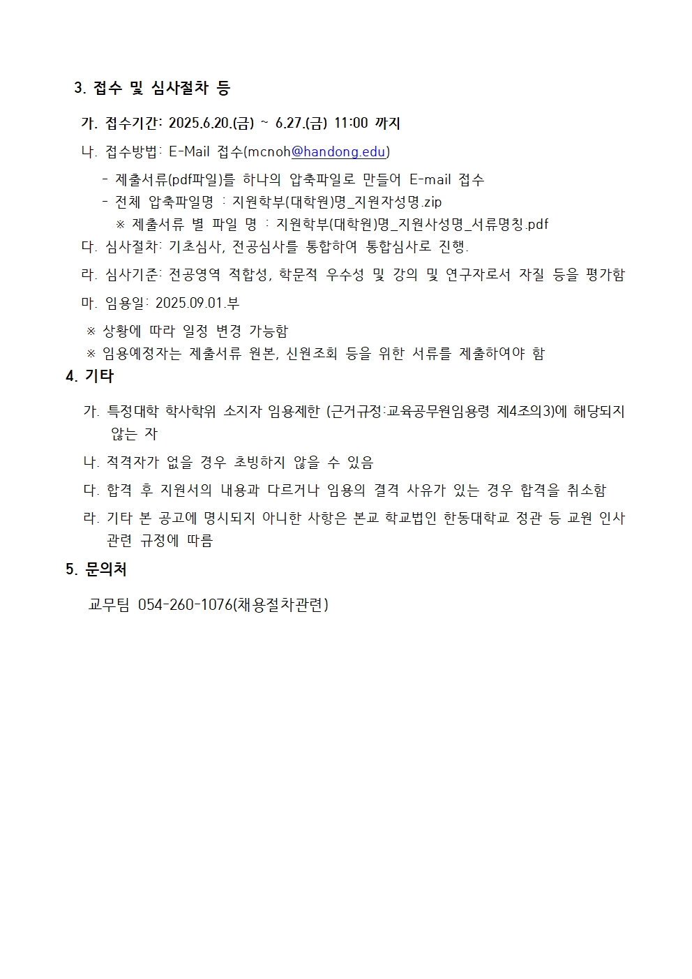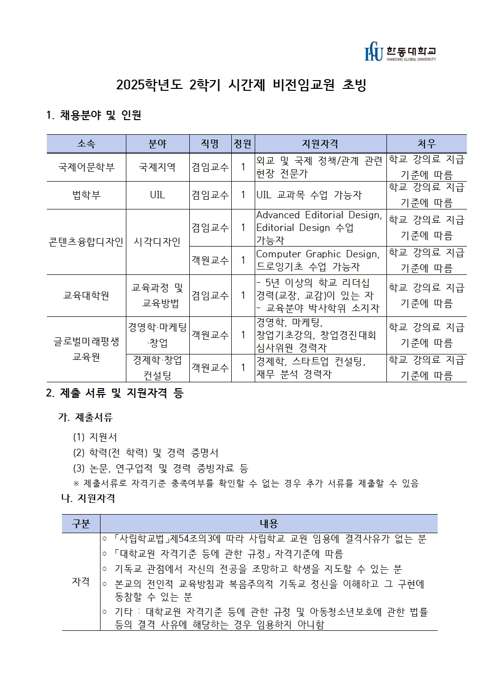 [교무팀] 2025학년도 2학기 시간제 비전임교원 초빙
