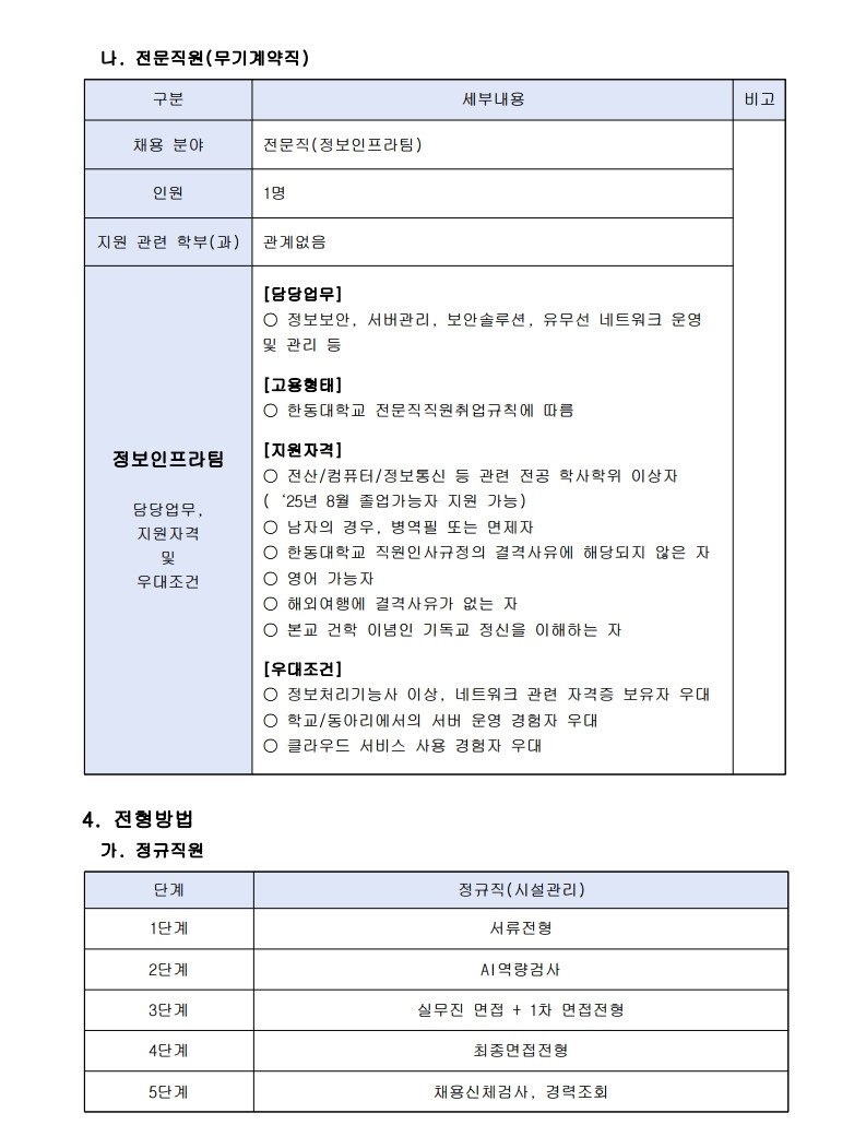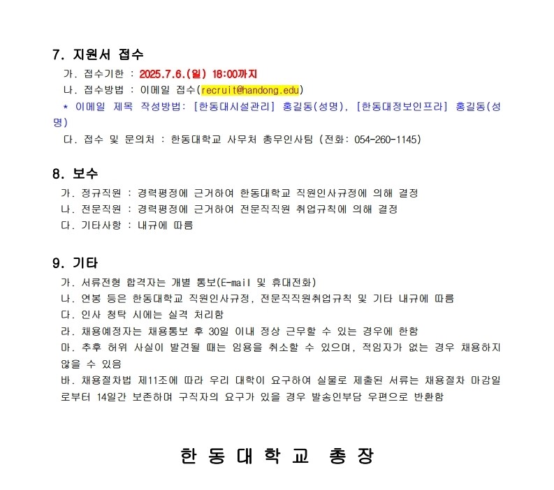 [한동대학교] 2025 한동대학교 정규직원 및 전문직원 채용공고