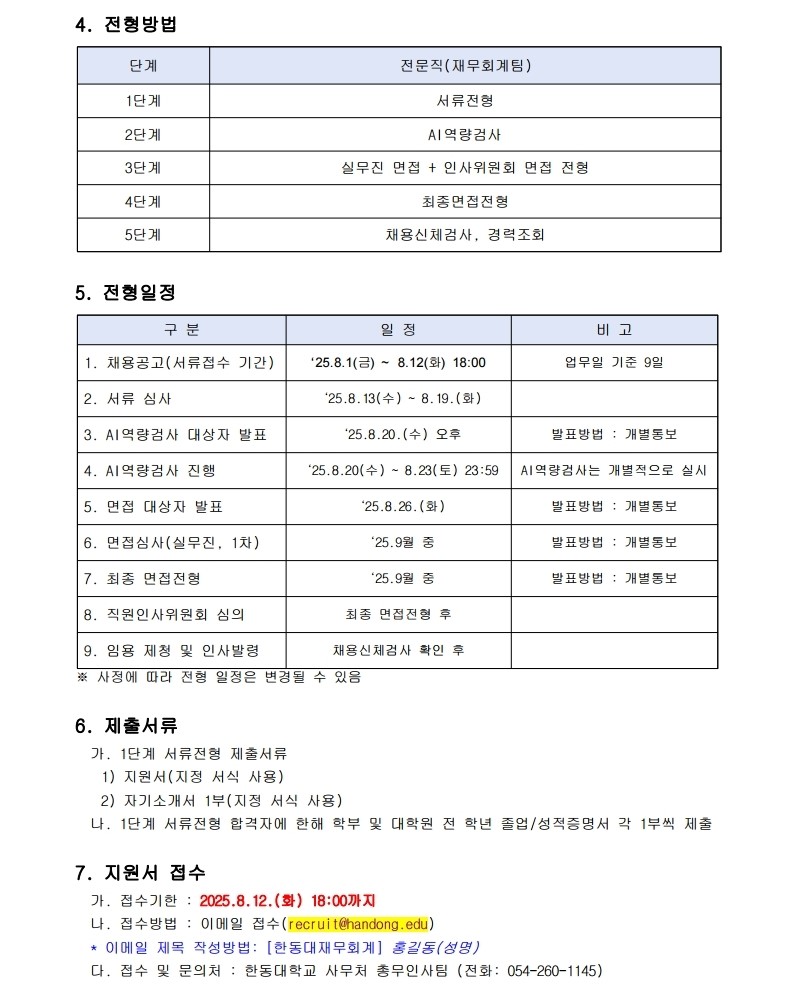 [한동대학교] 2025 한동대학교 정규직원 채용 공고