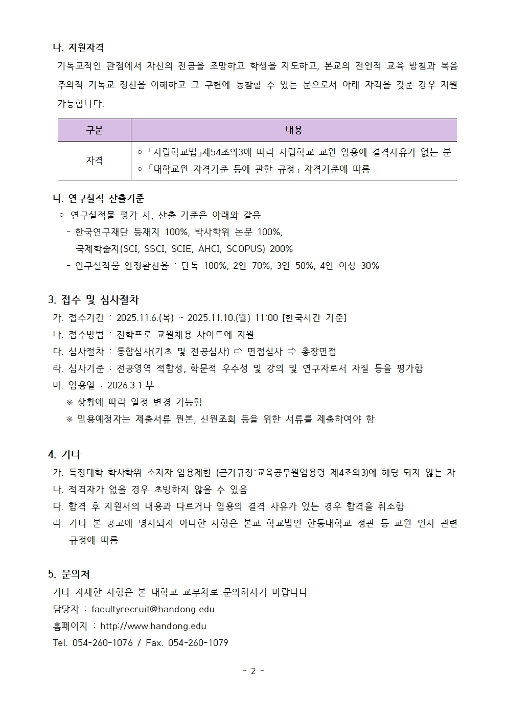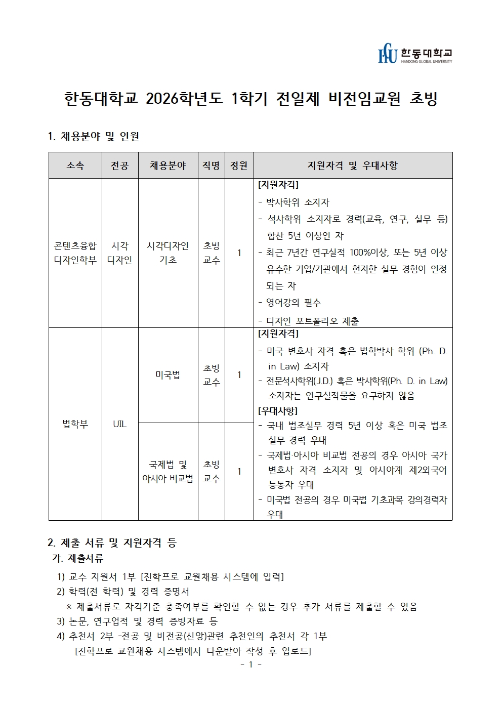 [교무팀] 2026학년도 1학기 전일제비전임 교원 초빙