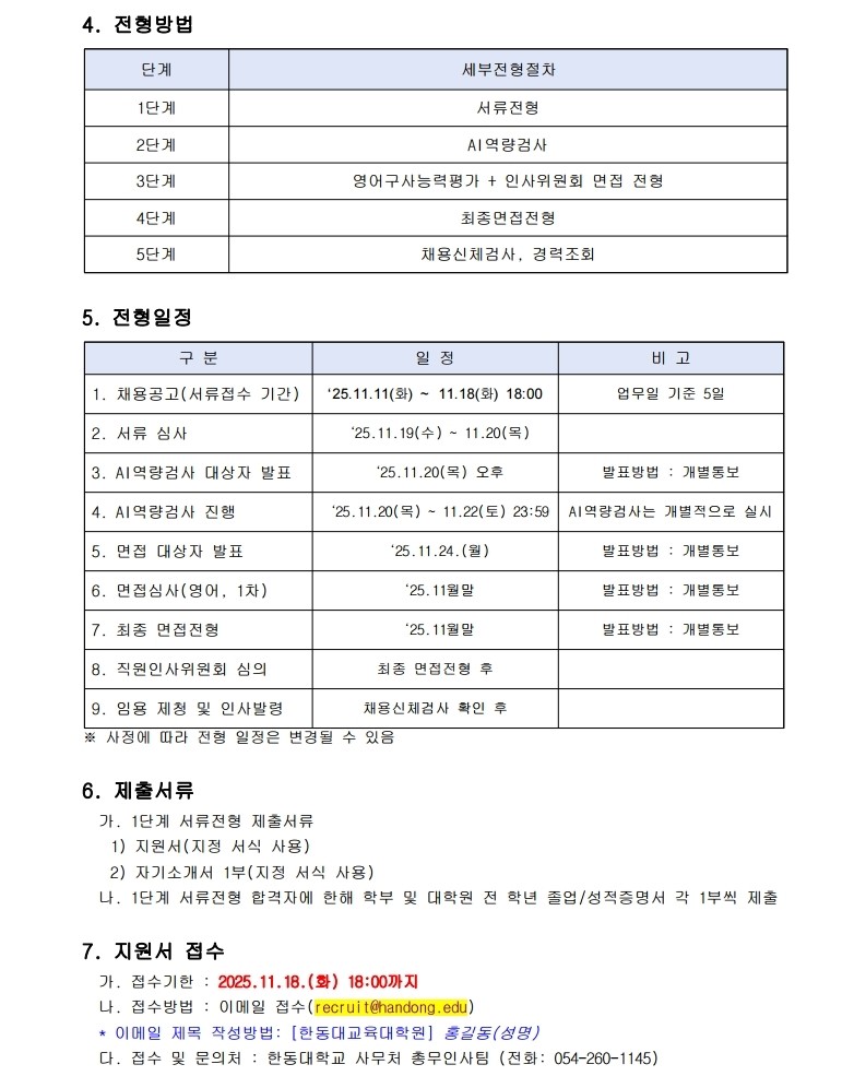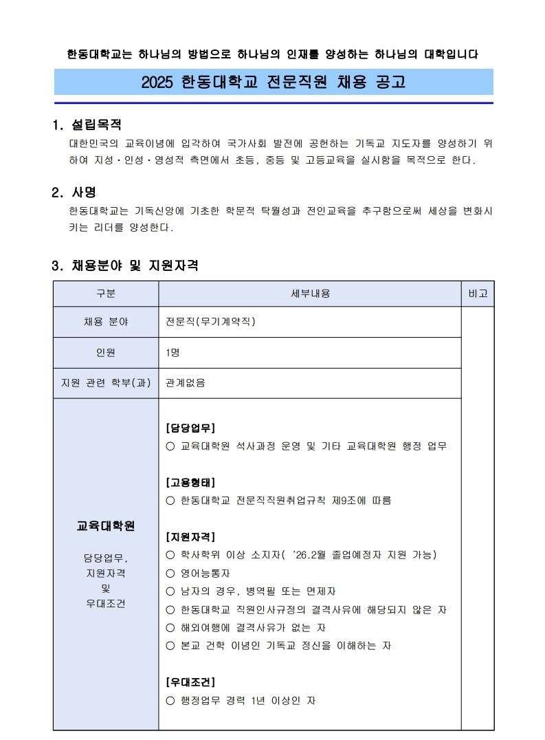 [총무인사팀] 한동글로벌체험학습센터 일반계약직(단기) 채용공고