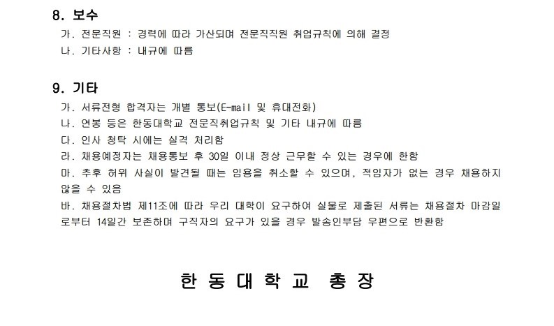 [총무인사팀] 생활관지원팀 일반계약직 채용 공고