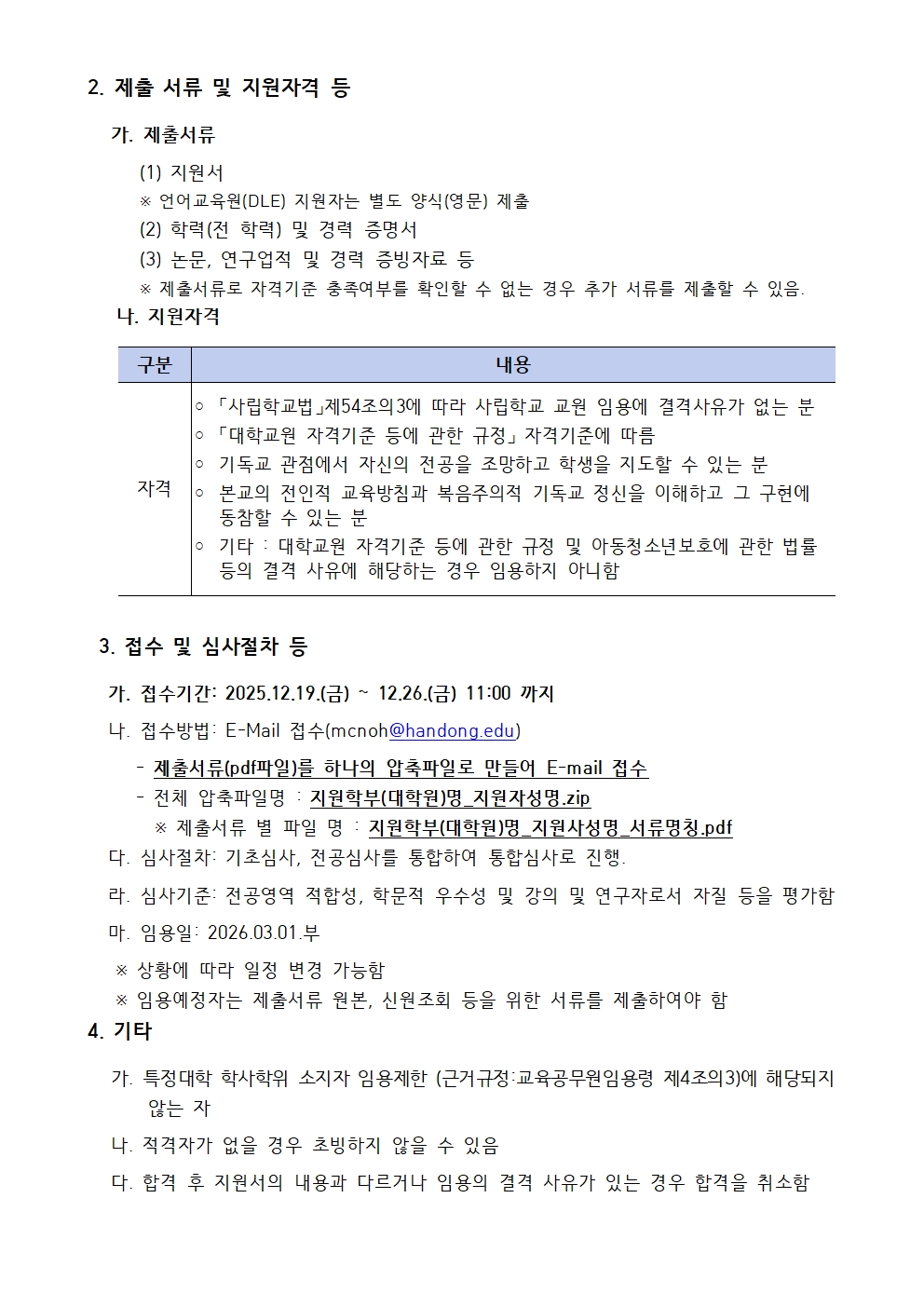 [교무팀] 2026학년도 1학기 시간제 비전임교원 초빙