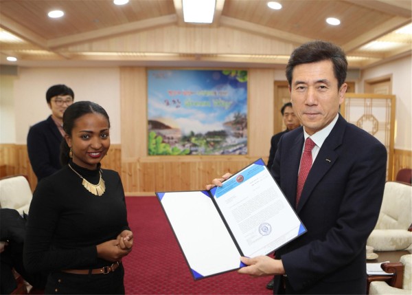 On February 21, the daughter of the Mayor of Adama, the second largest city of Ethiopia, Ms. Luhama Abebe, met the Mayor of Pohang, Kangduk Lee. She delivered a personally hand written letter from Mayor Adama hoping for mutual exchange between the two cities. The Mayor of Pohang, Kangduk Lee, said, “Future development potentials are high. I hope that both cities will begin various exchanges in the future.”
