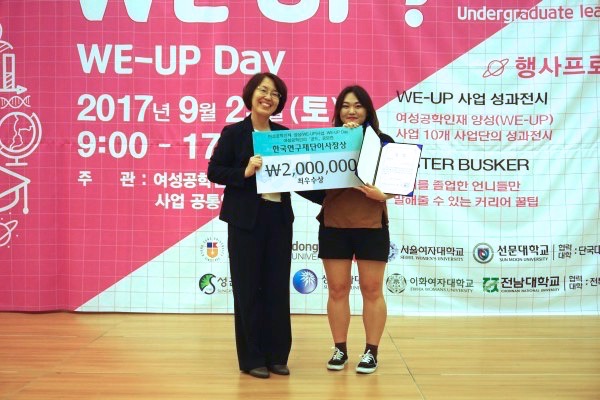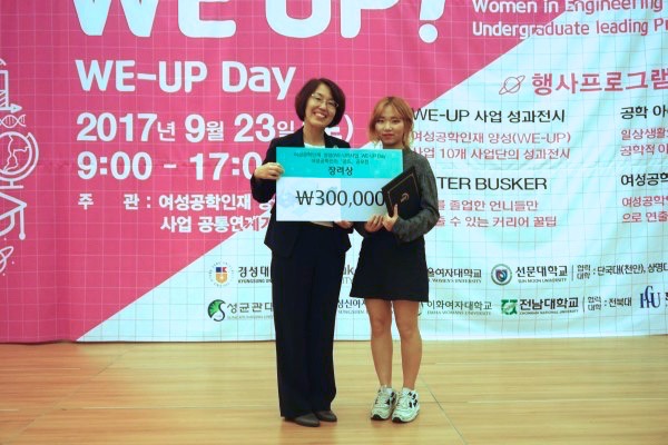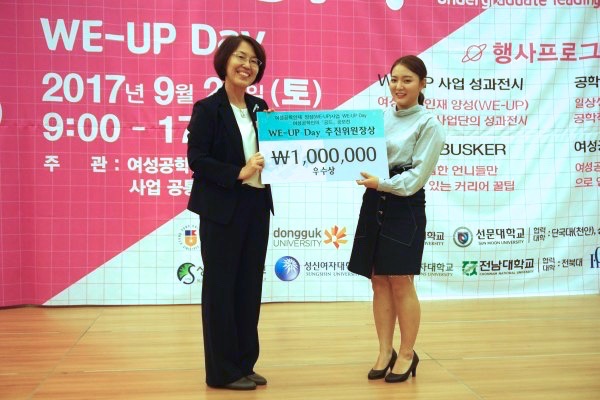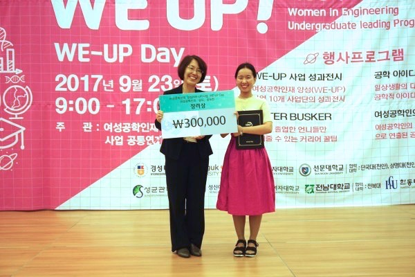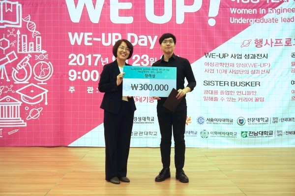 Seul-Gi Lee, Jia Yoo, Yeong-In Lee and Hye-Bin Kim, who presented ‘I am a female engineer’, received the ‘President Award of the National Research Foundation of Korea’ which is the grand prize. Ha-Yeong Kim, Su-Hyeon Suh and Ye-Ji Yoo, who presented ‘How much do we know about engineering students’, received the ‘Chairman Award of WE_UP Day Promotion Committee’ which is the excellence award.