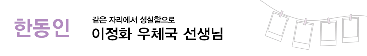 오랜 기간 한 자리에서 꾸준함과 성실함으로 일하고 계신 분이 있습니다. 10년이 넘는 시간 동안 매일 같은 자리에서 한동 구성원 내 소통의 연결고리가 되어주시는 이정화 우체국 선생님의 이야기 지금 만나보시죠!