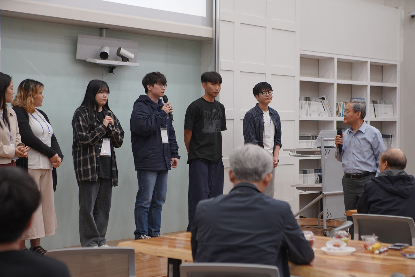 ▲ ‘해피 투게더’ 행사에서 새로운 가디언스 장학생들의 소감을 듣는 강신익 대표(맨 우측)