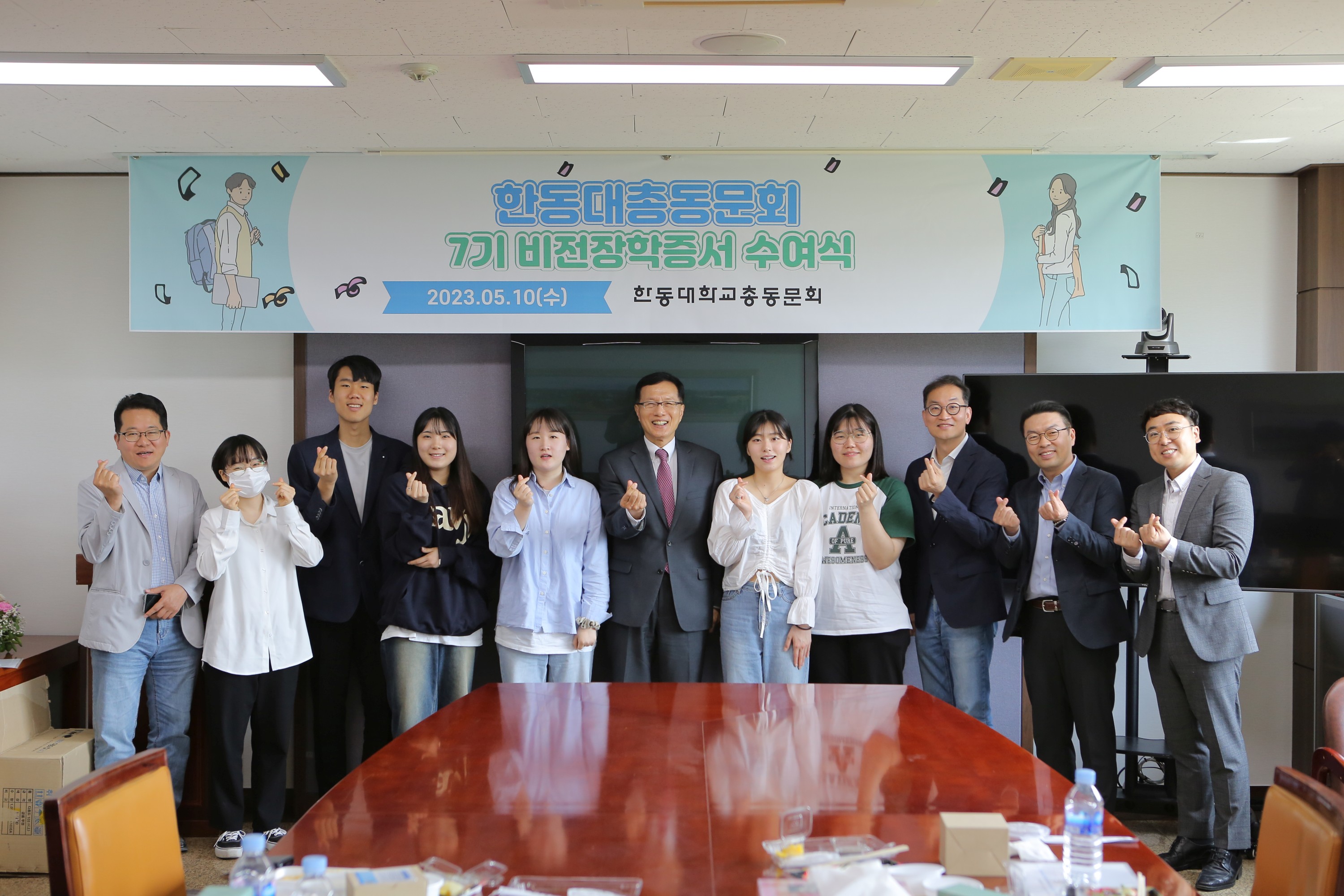 ▶ 지난 1학기에 전달된 한동대학교 총동문회의 “제7기 비전장학증서 수여식” 행사