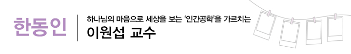 안녕하세요. 한동대학교 02학번으로 콘텐츠융합디자인학부 제품디자인/시각디자인 전공 이원섭 교수입니다. 이후로는 포항공대 가서 공부하게 됐고, 디자인에서 공학으로 전공이 바뀌었죠. 그리고 2018년도에 한동대학교에 왔습니다. 현재 학생들에게 ICT 공학과 전문분야인 인간공학을 가르치고 있습니다.