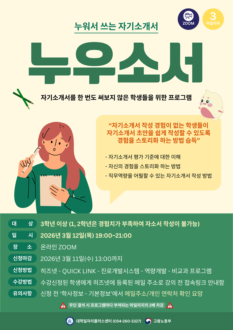 * 무단 결석 시 6마일리지가 차감되오니 신청 후 꼭 참여하시기 바랍니다.