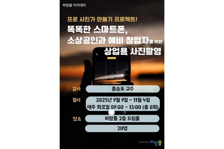 이번 아카데미는 온라인 마케팅이 필수인 시대에, 높은 비용과 전문성 부족으로 제품 홍보에 어려움을 겪는 소상공인들을 위해 기획됐다. 총 8회차에 걸쳐 진행된 이번 강좌는 홍승표 한동대 콘텐츠융합디자인학부 교수의 전문적인 지도로 진행되었으며, '스마트폰'을 활용해 전문가 수준의 상업 사진을 촬영하는 실전 노하우에 초점을 맞췄다.