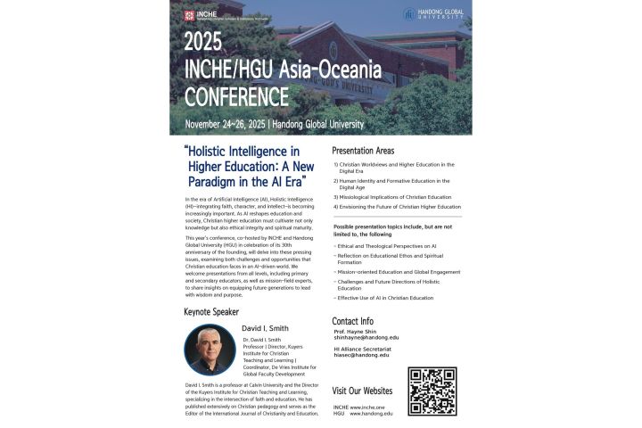 최도성 총장은 "한동대 개교 30주년과 INCHE 50주년을 맞아 개최되는 이번 컨퍼런스는 AI가 주도하는 시대에 신앙과 인성, 지성을 통합하는 전인지능(HI) 교육의 중요성을 논의하는 뜻깊은 자리"라며 "전 세계 기독교 고등교육 관계자들이 한자리에 모여 AI 시대를 지혜와 목적으로 이끌어갈 미래 세대를 어떻게 준비시킬 것인지 함께 고민하는 시간이 되길 기대한다"고 말했다.