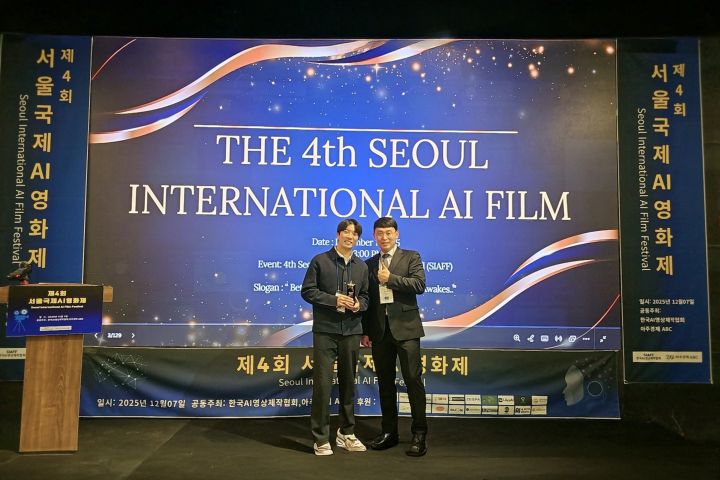 제4회 서울국제AI영화제는 AI 영화 산업의 발전과 창의적인 인재 양성을 위해 매년 개최되는 국제적 권위의 영화제로, 올해는 50개국에서 280편의 작품이 출품되어 치열한 경쟁을 펼쳤다. 심규진 교수팀은 AI 예술 창작의 실험성과 완성도, 스토리텔링 우수성을 인정받아 Best Short 부문 최고상인 대상(Grand Prize)을 수상했다.