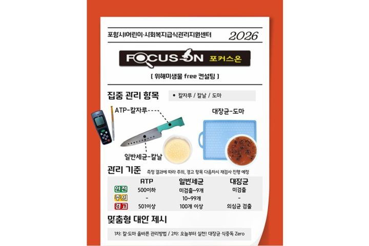 [사진1] 포항시Ⅰ어린이·사회복지급식관리지원센터의 'Focus On 위해미생물 free 컨설팅' 안내문