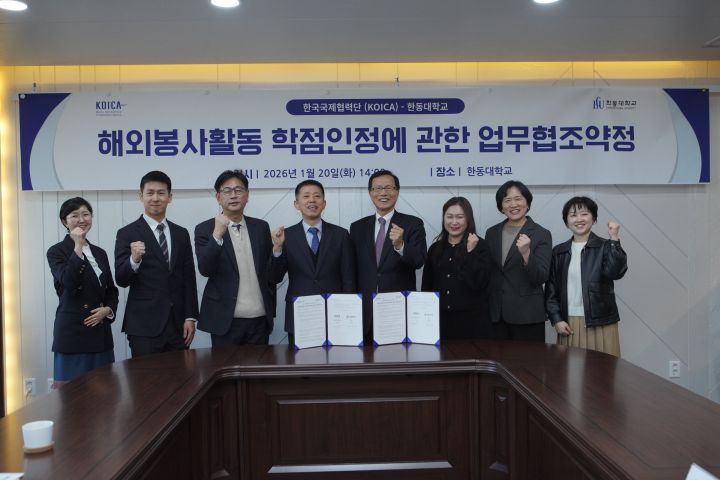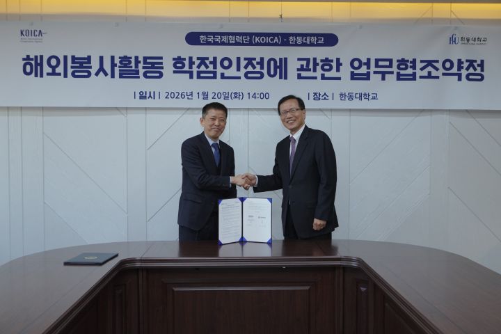한동대는 지난 20일 한국국제협력단(KOICA)과 해외봉사활동 학점인정 협력에 관한 업무협약을 체결했다고 밝혔다. 이번 협약으로 학생들의 해외 현장 활동이 정규 교육과정 내에서 학점으로 인정받을 수 있게 됐다.
