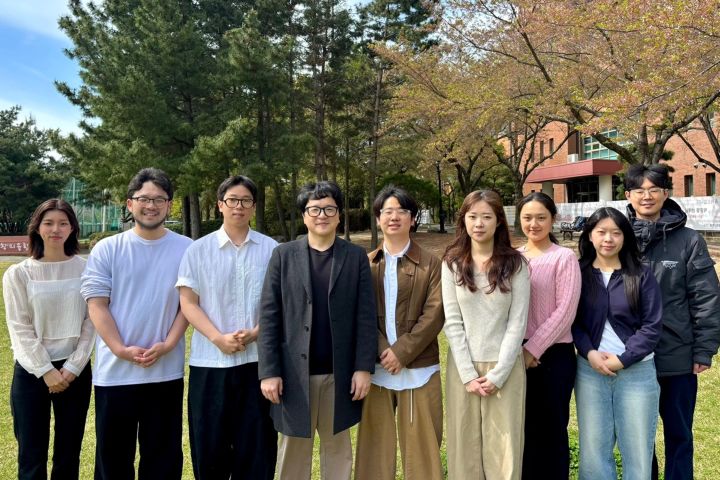 [사진1] 한동대SW중심대학 TeX-Corps 선정 창업팀 NEWDAWN·NOUS 팀원들이 조성배 교수(왼쪽에서 네 번째)와 함께 기념 촬영을 하고 있다.