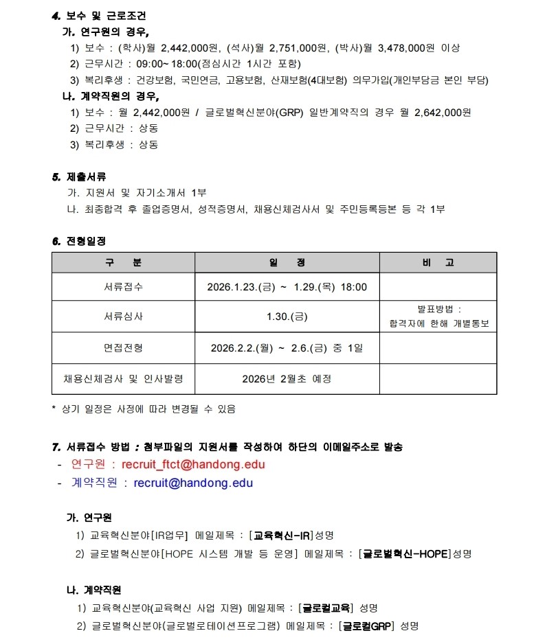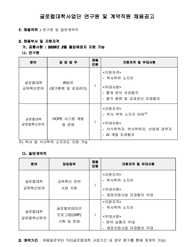 [총무인사팀] 글로컬대학사업단 전임연구원 및 전담직원 채용 공고