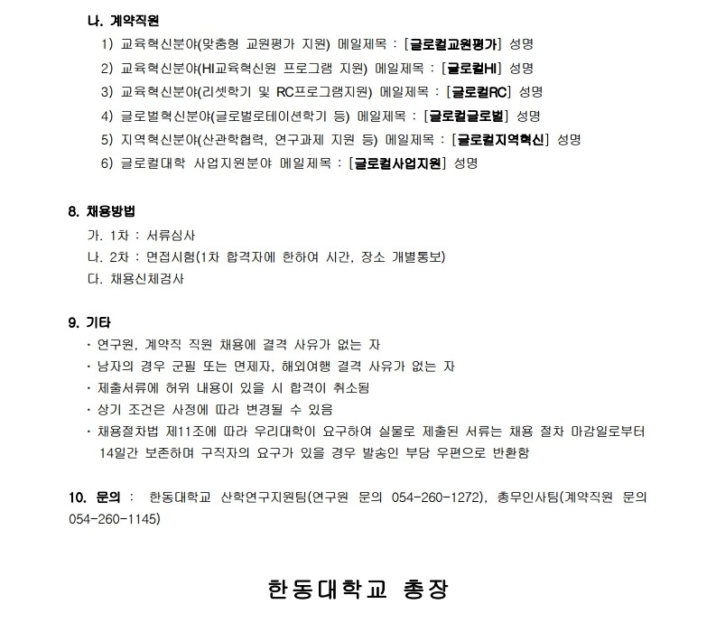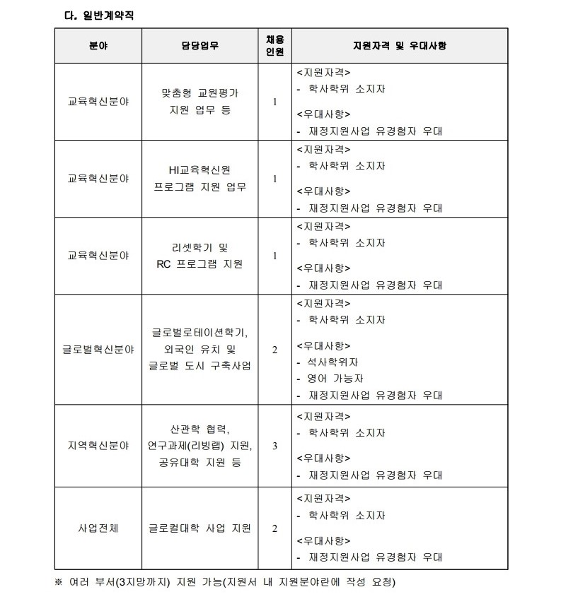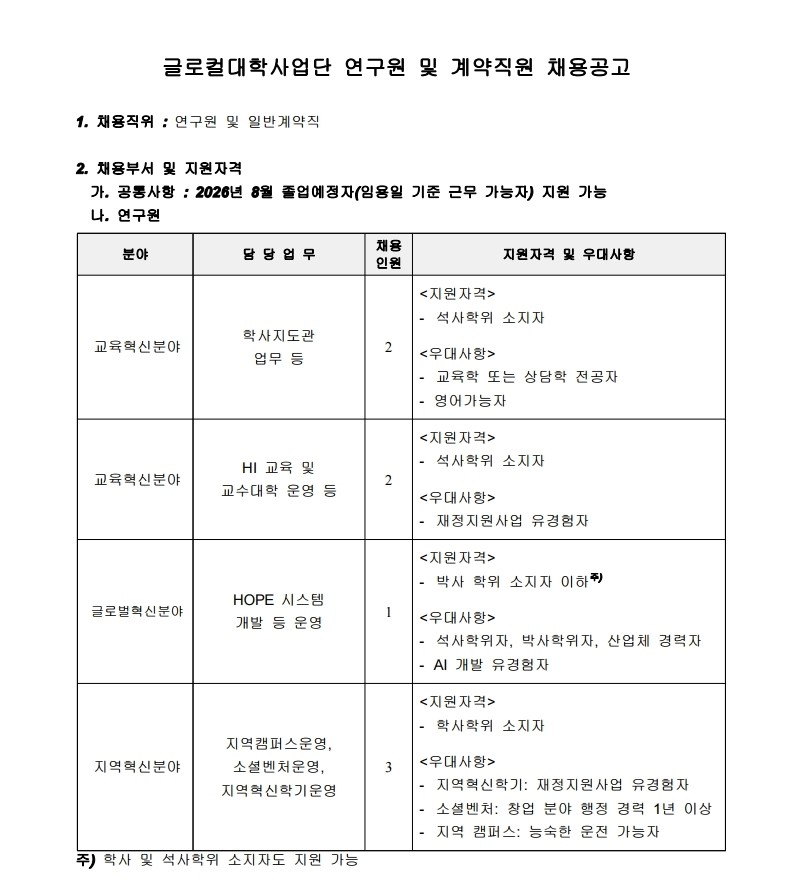 [총무인사팀] 글로컬대학사업단 전임연구원 및 전담직원 채용