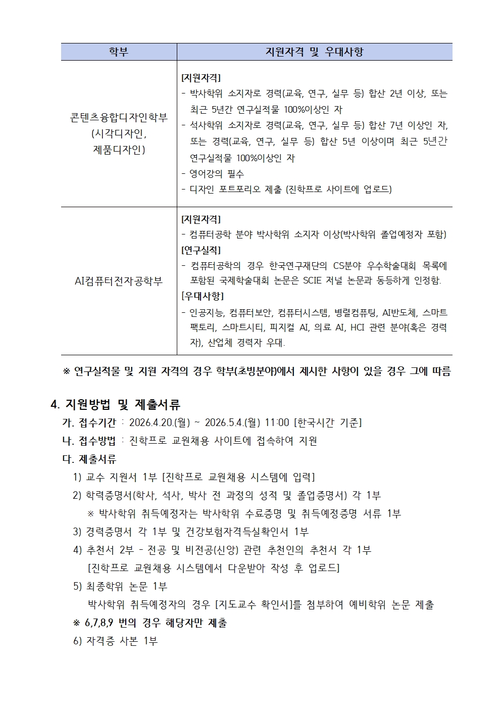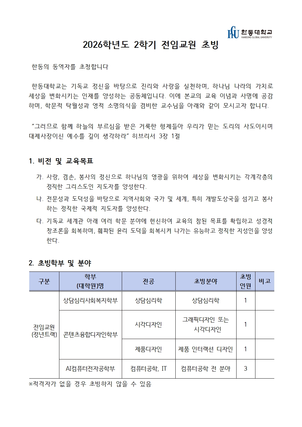 [교무팀] 2026학년도 2학기 전임교원 초빙