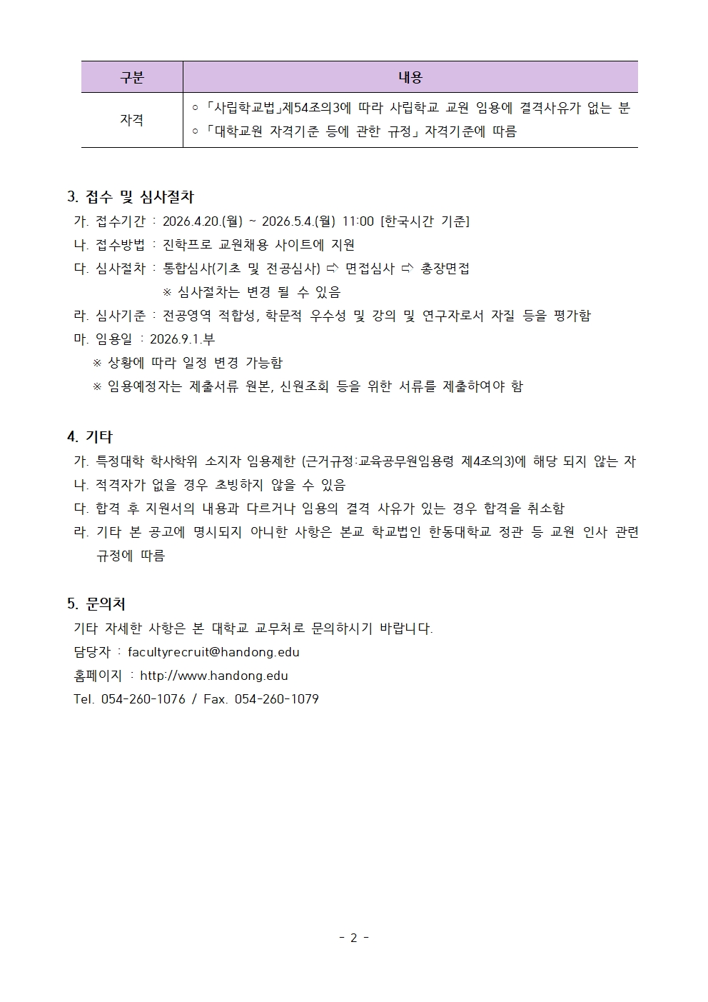 [교무팀] 2026학년도 2학기 전임교원 초빙